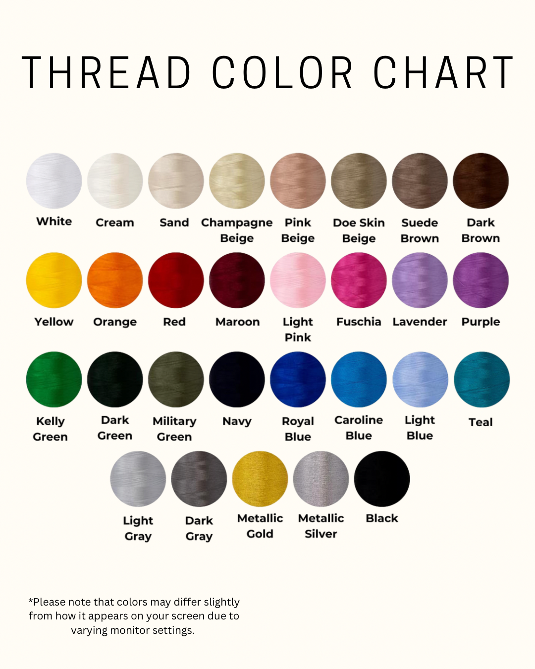 • Choose your preferred font & thread color carefully